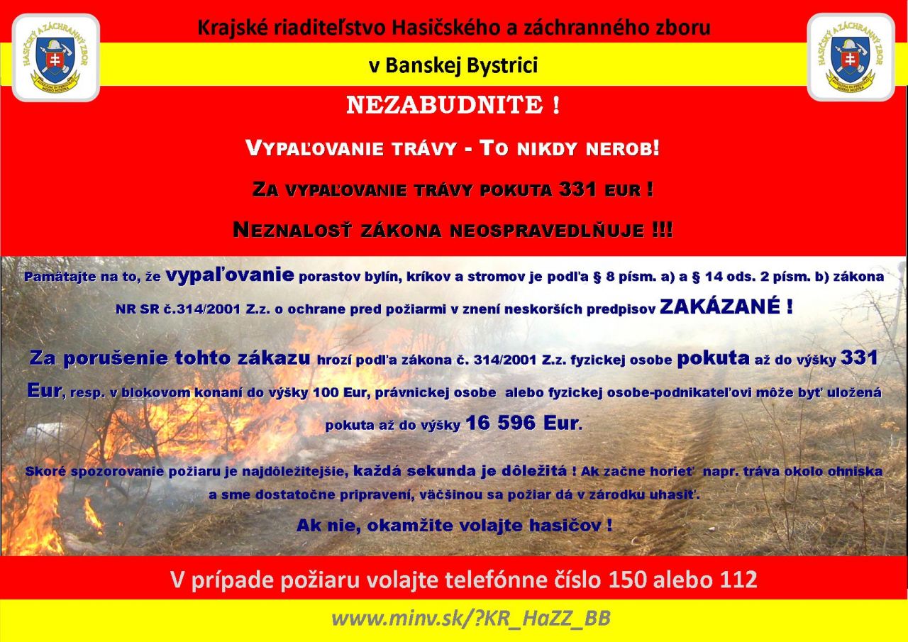Zákaz vypaľovania trávnatých porastov v jarnom období!!!