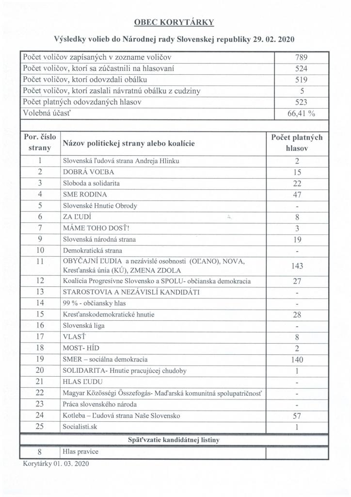 Oznamy - Výsledky volieb do Národnej rady Slovenskej republiky 2020